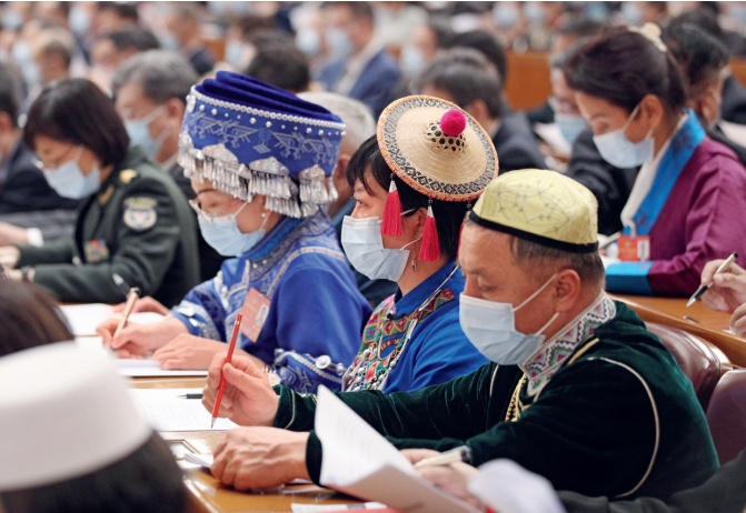 >> 3月4日,參加中國人民政治協商會議第十三屆全國委員會第五次會議的委員們在認真聽會。
