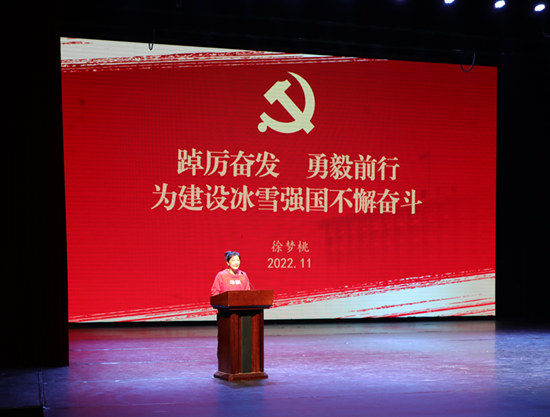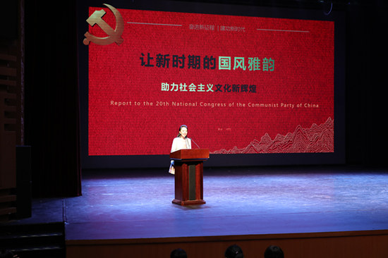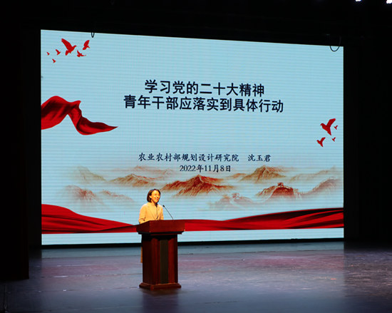 宣講活動中,中央和國家機關青聯副主席、中央民族樂團團長趙聰圍繞黨的二十大報告中關于“推進文化自信自強,鑄就社會主義文化新輝煌”的重要內容,結合近年來堅持為人民和時代創作的導向,大力弘揚推廣民族音樂,增強中華優秀傳統文化國際影響力、傳播力的實踐探索交流了認識體會。中央和國家機關青聯常委、農業農村部規劃設計研究院農村能源與環保研究所所長沈玉君聚焦黨的二十大報告中關于“全面推進鄉村振興”重大戰略部署,分享了自己和所在團隊扎根“三農”一線,把貫徹習近平總書記和黨中央部署要求、服務國家重大需求作為人生價值追求的心路歷程和奮斗過程。中央和國家機關優秀共產黨員、北京冬奧會冠軍、自由式滑雪空中技巧運動員徐夢桃結合奮勇拼搏、超越自我的成長經歷,交流了對黨的二十大報告中關于“促進群眾體育和競技體育全面發展,加快建設體育強國”的深刻理解。她們的生動講述和奮斗故事展現了中央和國家機關青年永遠跟黨走、奮進新征程的良好精神風貌和堅定決心信心,引起了在場觀眾的深深共鳴,會場內不時響起熱烈掌聲。