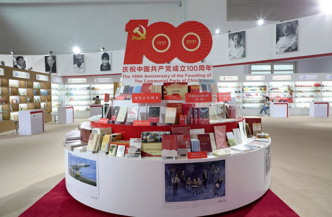 >> 2021年9月,第28屆北京國際圖書博覽會線上線下同步舉辦,中國出版集團有限公司設立“建黨百年主題圖書區”,集中展示近300種精品圖書。