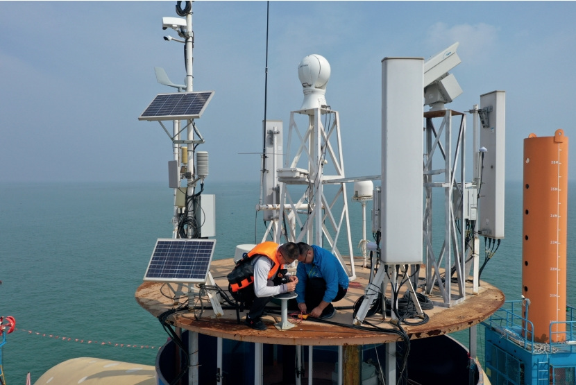 >> 布設在山東省日照市順風陽光海洋牧場的自動氣象觀測站,可為海洋災害性天氣監測預報預警提供準確可靠的觀測數據。