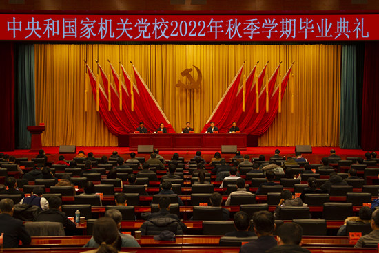 中央和國家機關黨校校委會成員,2022年秋季學期司局級干部進修班、處級干部進修班、青年干部培訓班全體學員及黨校部分黨員干部共150余人參加畢業典禮。
