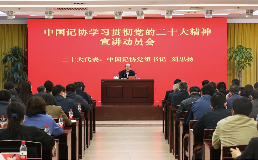 黨的二十大報告提出,要建設具有強大凝聚力和引領力的社會主義意識形態,鞏固壯大奮進新時代的主流思想輿論,增強中華文明傳播力影響力,講好中國故事、傳播中國聲音,展現可信、可愛、可敬的中國形象。中國記協作為黨領導的全國性人民團體,是黨中央領導新聞輿論工作的參謀助手,是黨和政府密切聯系新聞界的橋梁紐帶,是繁榮發展黨的新聞事業的重要力量,在迎接服務黨的二十大方面承擔著重要職責,將繼續在學習黨的二十大精神方面走好“第一方陣”,在宣傳黨的二十大精神方面發揮獨特作用,在宣介黨的二十大精神方面作出積極貢獻。