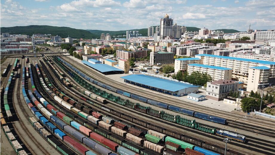 中國( 黑龍江)自由貿易試驗區綏芬河片區局部(2022年6月8日拍攝的無人機照片)。