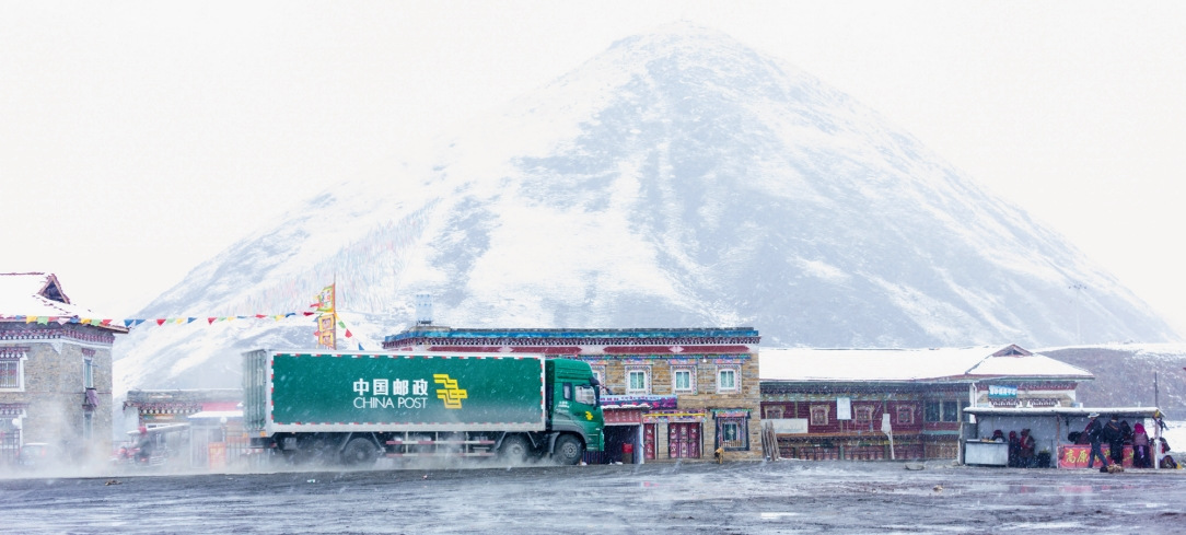 >> 截至目前,中國郵政全網點達5.4萬個,31?。▍^、市)建制村直接通郵率達到100%。圖為郵車行駛在海拔5373米的中國海拔最高鄉——西藏自治區山南市浪卡子縣普瑪江塘鄉高原郵路上。