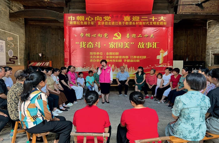 >> 按照全國婦聯“巾幗心向黨 喜迎二十大”群眾性主題宣傳教育活動的安排,2022年6月29日,江西省于都縣婦女群眾積極參與“我奮斗·家國美”故事匯分享活動。