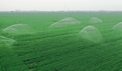 >> 2022年3月22日,在河南省周口市商水縣張莊鄉高標準農田示范區,水肥一體機在為麥田澆灌。