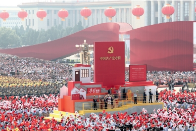 >> 2019年10月1日上午,慶祝中華人民共和國成立70周年大會在北京天安門廣場隆重舉行。這是群眾游行中的“從嚴治黨”方陣。