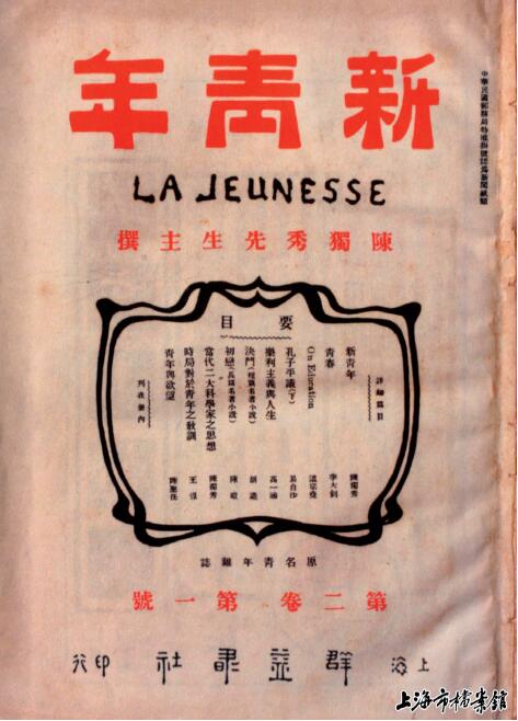 這是1916年9月1日出版的《新青年》雜志封面。