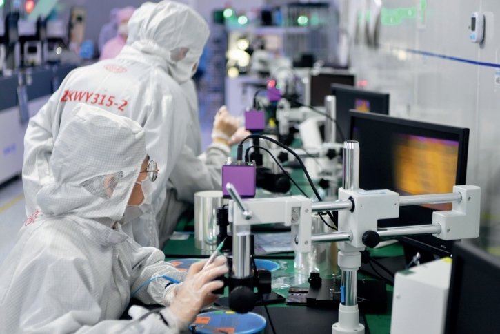 >> 2月23日,在位于石獅高新區的福建中科光芯光電科技有限公司光芯片生產車間,技術人員在加班加點生產。