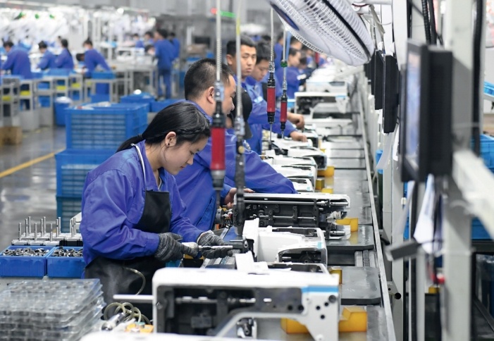 >> 3月23日,在位于臺州市的杰克科技股份有限公司,工作人員在裝配車間裝配縫紉機。