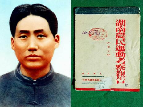 左圖為毛澤東1927年在武漢。右圖為毛澤東在武漢寫的《湖南農民運動考察報告》(資料照片)。