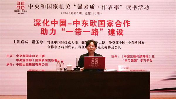 7月1日,中央和國家機關“強素質·作表率”讀書活動2023年第5期在京舉辦。曾任中國駐捷克大使、中國駐羅馬尼亞大使、中國-中東歐國家合作事務特別代表,現任中國-捷克友好協會會長的霍玉珍以《深化中國-中東歐國家合作 助力“一帶一路”建設》為題作主題講座。中央和國家機關各部門黨員干部300余人參加活動,現場氣氛熱烈。