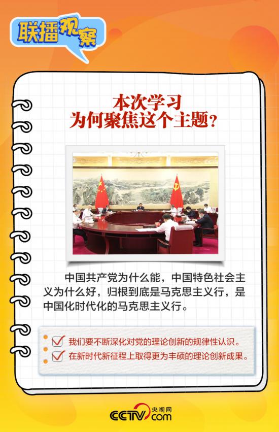 6月30日,中共中央政治局進行第六次集體學習。黨的二十大以來,中共中央政治局每次學習都會聚焦不同主題,此次學習內容主題為“開辟馬克思主義中國化時代化新境界”。習近平總書記在主持學習時強調,開辟馬克思主義中國化時代化新境界的重大任務,是當代中國共產黨人的莊嚴歷史責任。