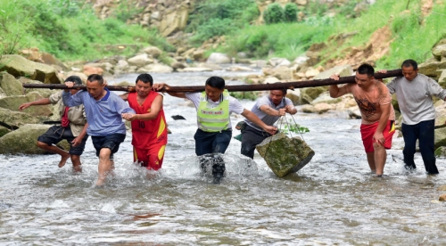 >> 在位于黔桂交界大苗山深處的烏英苗寨,駐村干部帶領村民維修河堤 (資料圖)。