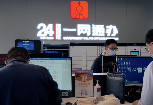 >> 5月12日,市民在中國(上海)自由貿易試驗區臨港新片區政務服務中心“一網通辦”業務區辦理業務。