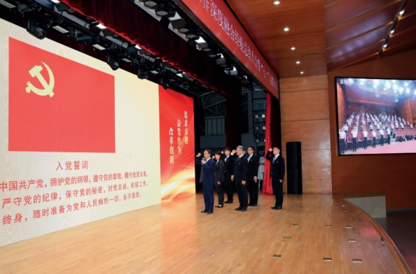 >> 國家級高層次人才李立毅(左一)作為哈爾濱工業大學新黨員代表進行入黨宣誓。