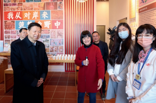 >> 中央臺辦、國務院臺辦主任宋濤(左一)在廈門走訪海峽城鄉發展基金會赤土社工作站,詳細了解臺灣青年參與大陸社區治理的情況。