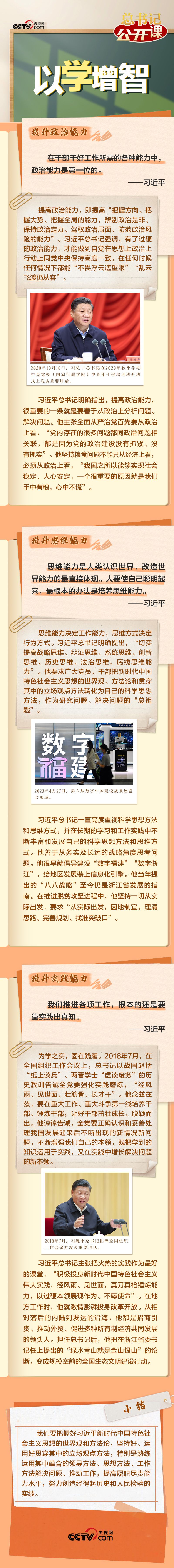 今年5月,習近平總書記在聽取陜西省委和省政府工作匯報時,深刻闡明“以學增智,就是要從黨的科學理論中悟規律、明方向、學方法、增智慧,把看家本領、興黨本領、強國本領學到手”,并從提升政治能力、提升思維能力、提升實踐能力三個方面提出明確要求。