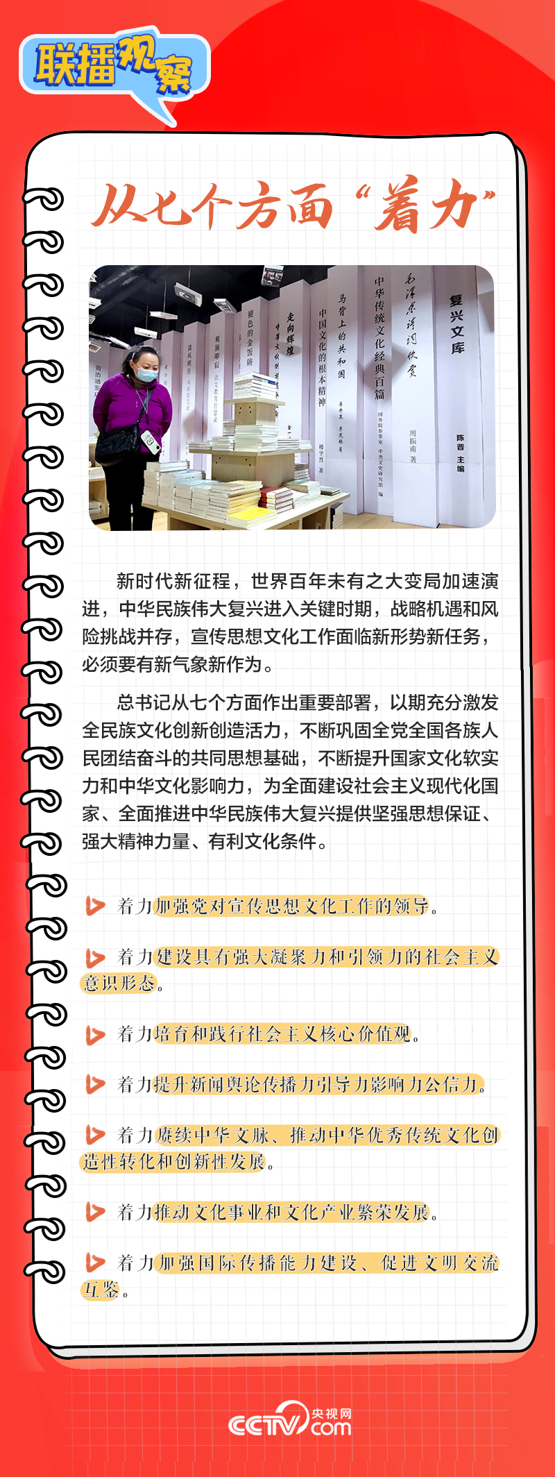 近日,習近平總書記對宣傳思想文化工作作出重要指示,提出“新的文化使命”“首要政治任務”等論斷,并要求從七個方面著力,為全面建設社會主義現代化國家、全面推進中華民族偉大復興提供堅強思想保證、強大精神力量、有利文化條件。