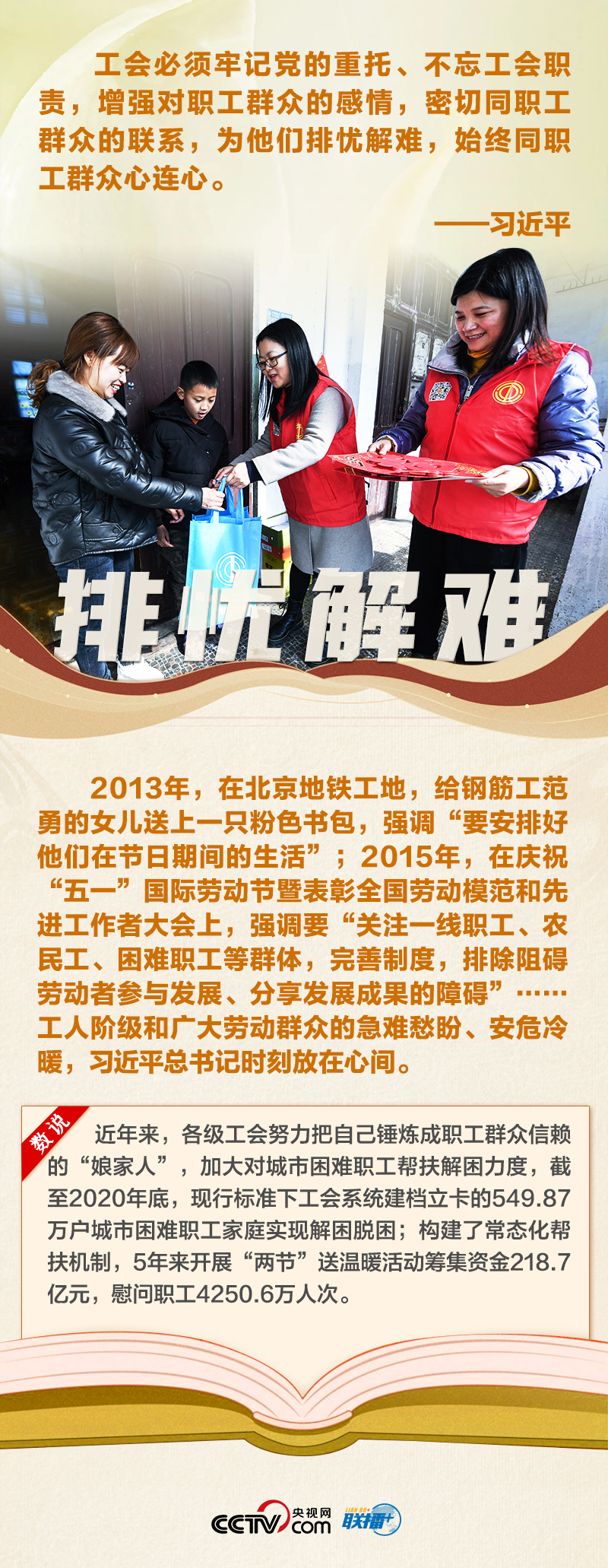 工人階級是我們黨最堅實最可靠的階級基礎,工運事業是黨的事業的重要組成部分,工會工作是黨治國理政的一項經常性、基礎性工作。黨的十八大以來,習近平總書記多次出席勞動者活動,同普通工人談心,給勞?;匦?,為廣大勞動群眾煥發工人階級主人翁精神注入強勁動力。
