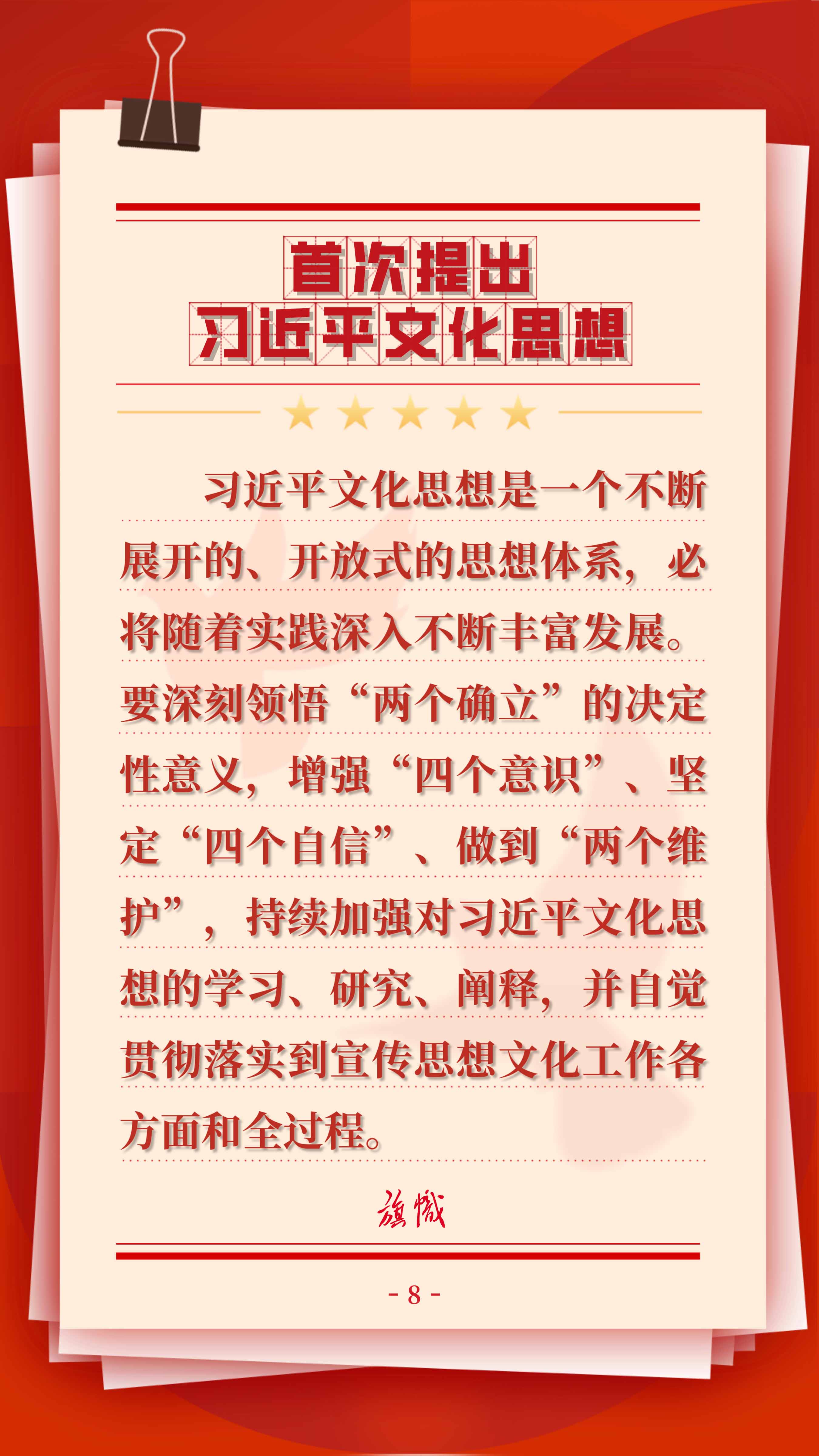 10月7日至8日,全國宣傳思想文化工作會議在京召開。會議傳達了習近平總書記對宣傳思想文化工作的重要指示,并首次提出習近平文化思想。旗幟圖解帶大家學習總書記重要指示和會議精神要點!