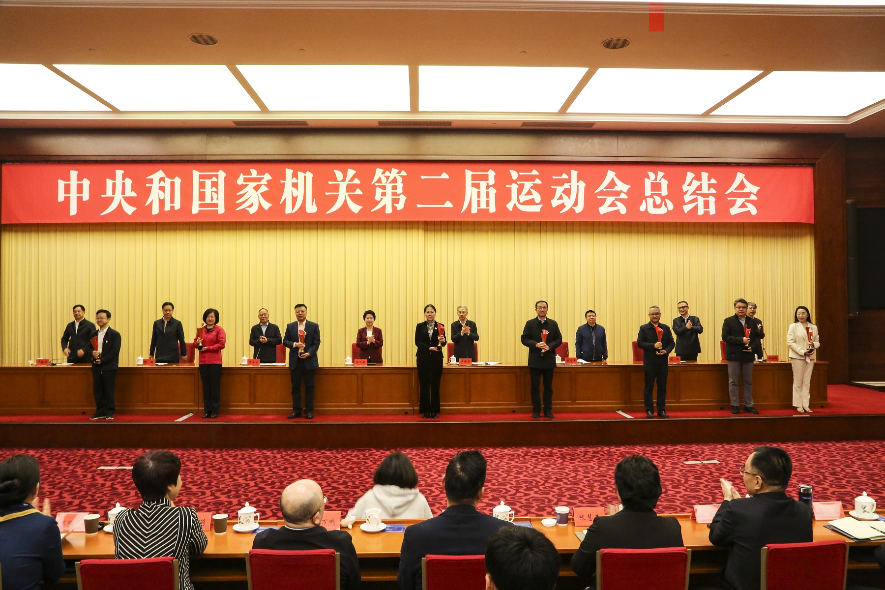 據悉,本屆運動會共設立球類、田徑、游泳、棋牌、大眾體育、拓展挑戰、趣味運動等7大類20個比賽項目,今年4月開始,歷時半年,中央和國家機關2萬多名干部職工參加比賽。交通運輸部、中央廣電總臺、教育部、中央辦公廳、公安部、中國科學院、應急管理部、國務院國資委等8個運動隊代表團獲得甲組團體總分前八名,國家統計局、司法部、中國科協、中國外文局、海關總署、中國貿促會、全國人大常委會機關、住房城鄉建設部等8個部門獲得乙組團體總分前八名,國務院辦公廳、退役軍人事務部、中央和國家機關工委、國家信訪局、國家醫保局、宋慶齡基金會、中國僑聯、中央臺辦等8個部門獲得丙組團體總分前八名。中央辦公廳等56個部門獲得優秀組織獎。中央紀委國家監委機關等53個部門獲得精神文明獎。全國婦聯機關黨委、公安部直屬機關黨委、中央廣電總臺機關黨委等3個單位獲得特殊貢獻獎。會議為有關單位頒獎。