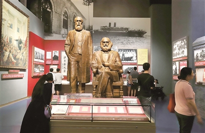 在五千多年中華文明深厚基礎上開辟和發展中國特色社會主義,把馬克思主義基本原理同中國具體實際、同中華優秀傳統文化相結合是必由之路。圖為近日,觀眾在中國共產黨歷史展覽館參觀“不忘初心、牢記使命”黨史展。圖片來源:視覺中國
