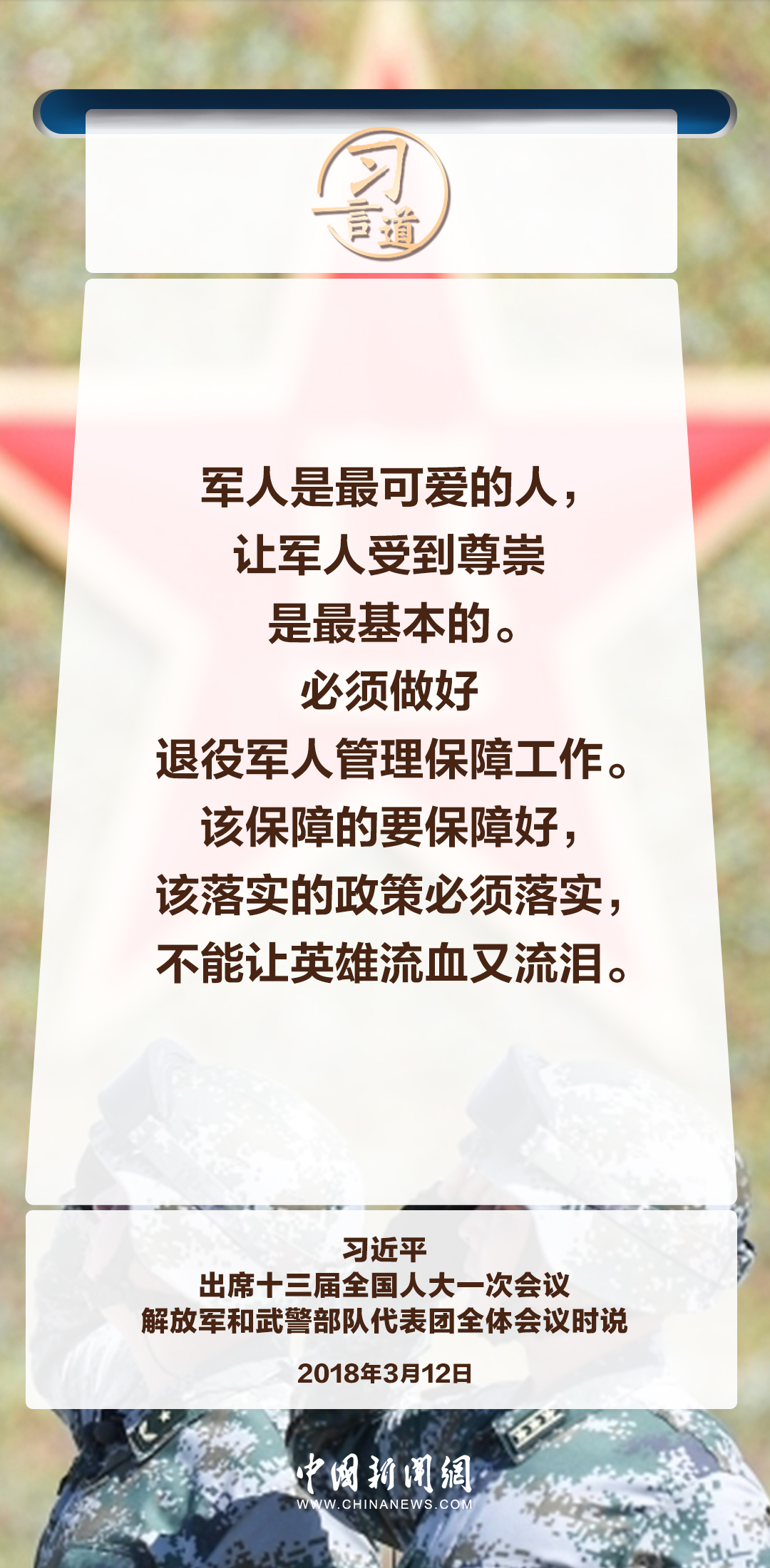 軍人是最可愛的人,讓軍人受到尊崇是最基本的。黨的十八大以來,習近平總書記高度重視退役軍人工作,多次作出重要指示,為做好退役軍人工作提供了根本遵循,一起回顧總書記重要論述。