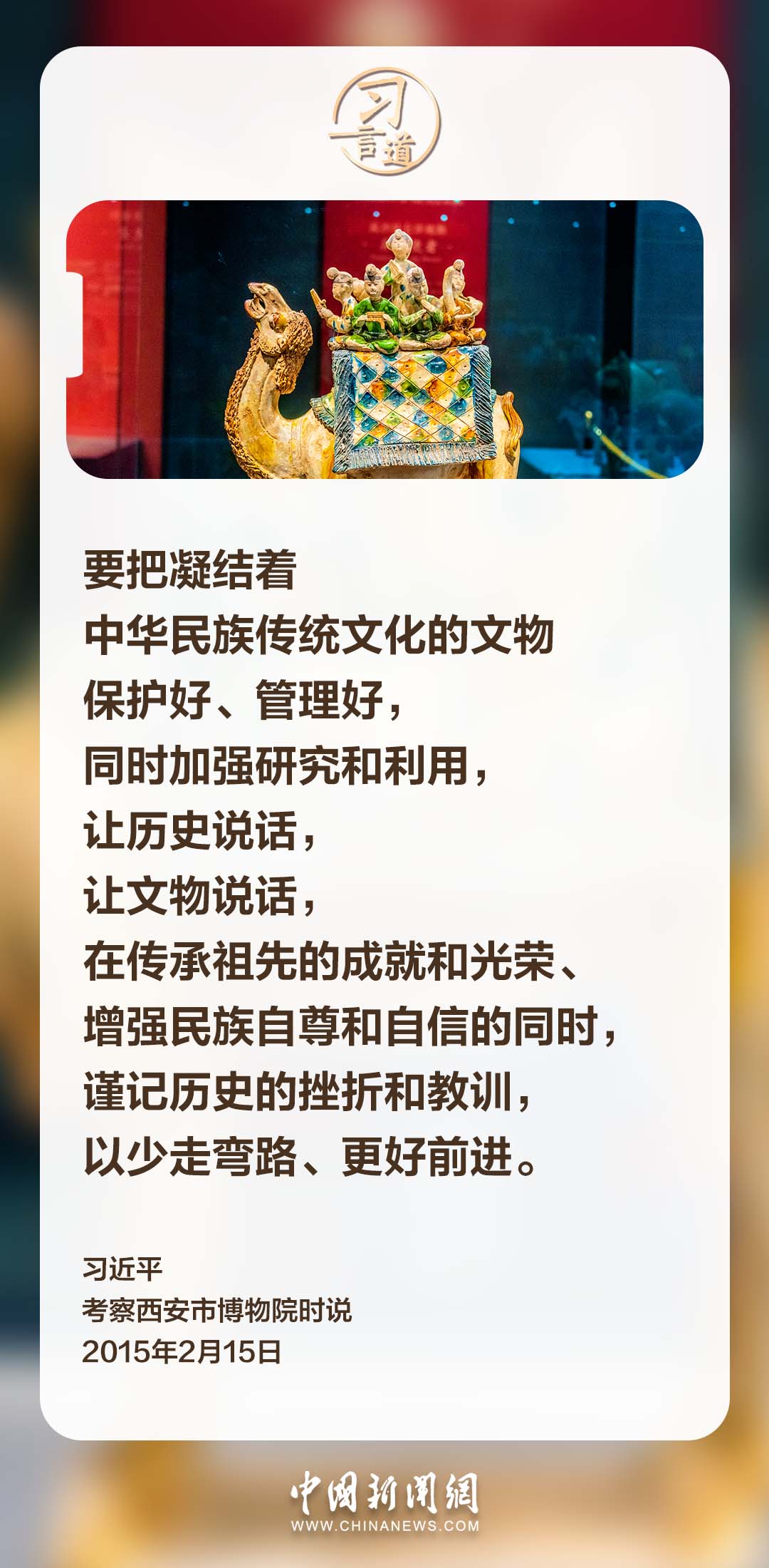 歷史文化遺產承載著中華民族的基因和血脈。習近平總書記高度重視文化遺產保護工作,多次強調要守護好中華文脈,推動中華優秀傳統文化創造性轉化、創新性發展。