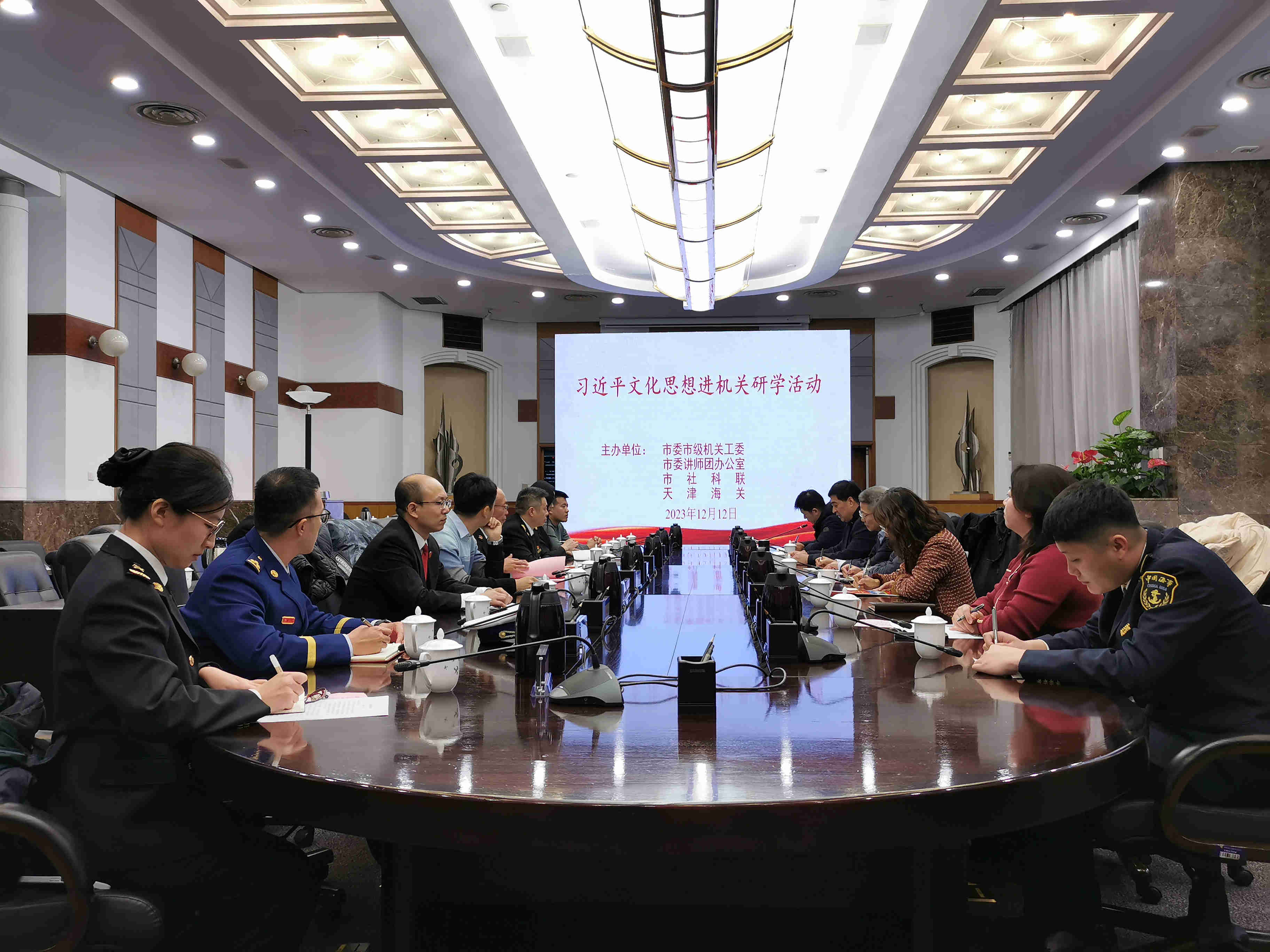 12月12日,天津市委市級機關工委、市委講師團辦公室、市社科聯、天津海關組織開展習近平文化思想進機關研學活動,來自市商務局、天津海事法院、市檢三分院、天津海事局、天津邊防檢查總站、天津消防等單位的黨員干部、宣講員代表和天津海關青年理論學習小組成員代表60余人,來到天津海關廉潔文化建設暨廉政教育基地實地參觀見學、與專家學者交流研學,共同感悟習近平文化思想的理論魅力和實踐偉力。