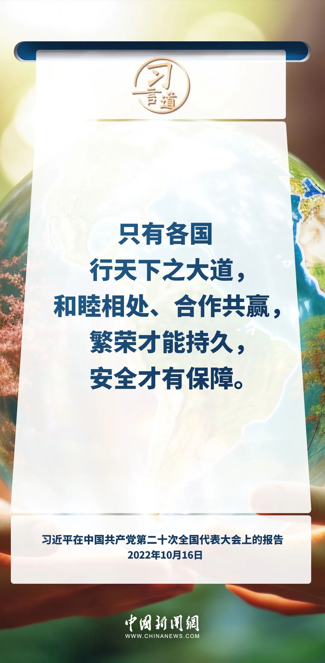世界好,中國才會好;中國好,世界會更好。習近平主席在多個重要場合對人類命運共同體理念進行全面深刻論述,強調開放包容、合作共贏才是人間正道。