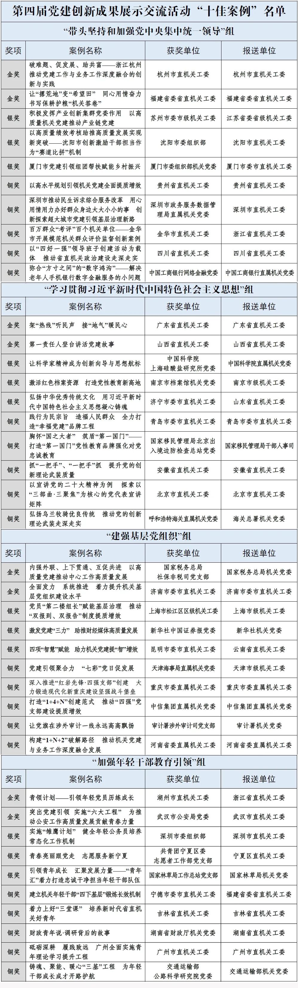 第四屆黨建創新成果展示交流活動“十佳案例”名單