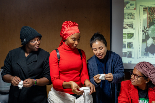 2023年11月12日,浙江師范大學外國留學生組團來到金華市婺城區安地鎮巖頭村,沉浸式體驗扎染技藝。