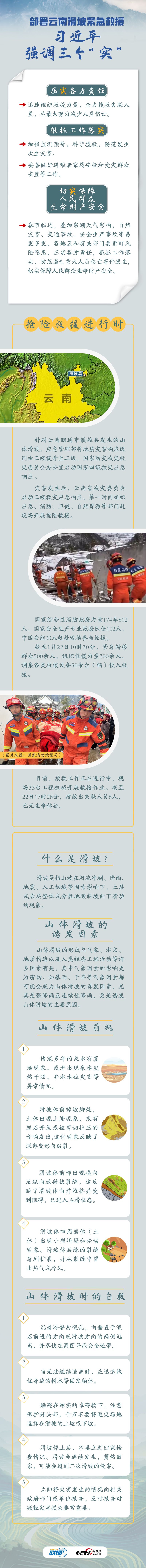 1月22日6時許,云南昭通市鎮雄縣塘房鎮涼水村發生山體滑坡,造成18戶房屋被掩埋、47人失聯。