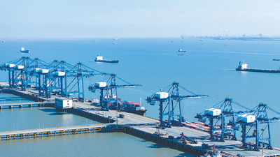 正月初七,江蘇南通港通海港區集裝箱裝卸繁忙有序。翟慧勇攝(人民視覺)