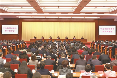 2月20日,中央和國家機關警示教育會在京召開,中央和國家機關各部門機關黨委、機關紀委以及機關司局和直屬單位黨組織、紀檢組織負責同志參加會議。圖為會議現場。松山 攝