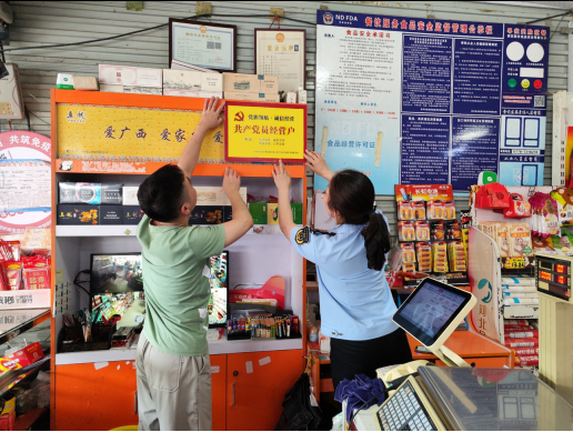 >> 廣西河池市南丹縣“小個?!秉h總支為“共產黨員經營戶”掛牌,引導黨員商戶亮身份、亮職責、亮承諾。