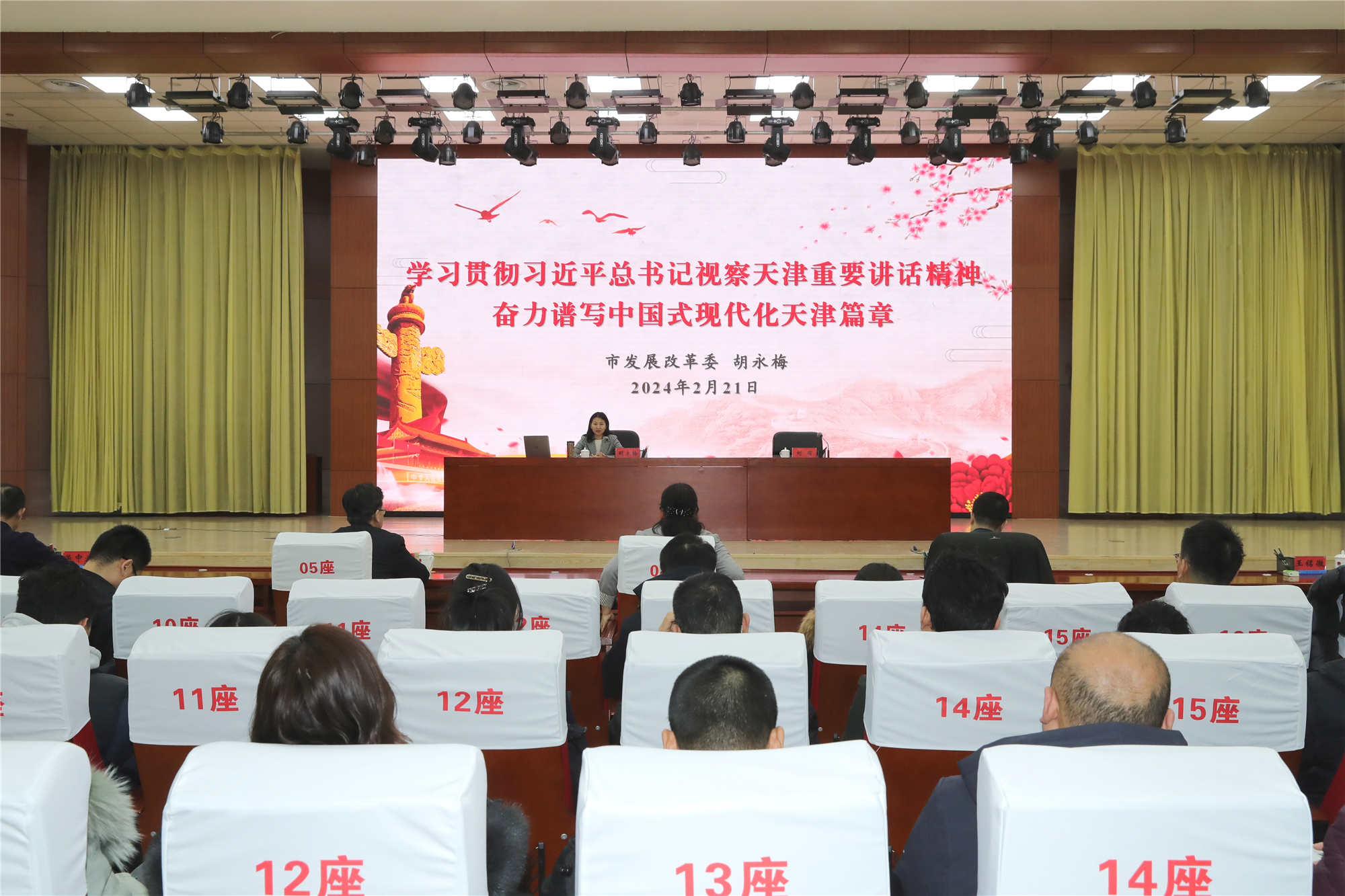 劉麗在主持時指出,舉辦講座既是為天津市級機關黨組織作示范,更是推動以高質量機關黨建引領和保障天津高質量發展的有力抓手,希望各基層黨組織和黨員干部以更高的政治站位、更嚴的標準要求、更實的工作舉措,深入學習宣傳貫徹落實習近平總書記重要講話精神。要深化思想認識、優化工作謀劃,把以高質量機關黨建服務高質量發展體現在抓學習的質量上,切實把黨員干部的精氣神統一到重要講話精神上來。要堅持問題導向、豐富工作載體,牢固樹立機關黨建和業務工作融合發展的理念,創新機關黨建工作載體,持續推進思想、目標、組織、機制融合,不斷增強黨組織政治功能和組織功能。要突出作風養成、凈化工作環境,扎實推進風清氣正的政治機關建設,發揮好支部管到人頭的優勢,緊盯重要講話精神落實落地,督促黨員干部真正用硬肩膀、寬肩膀把該扛的責任扛起來,為“奮力譜寫中國式現代化天津篇章”出氣力、作貢獻。