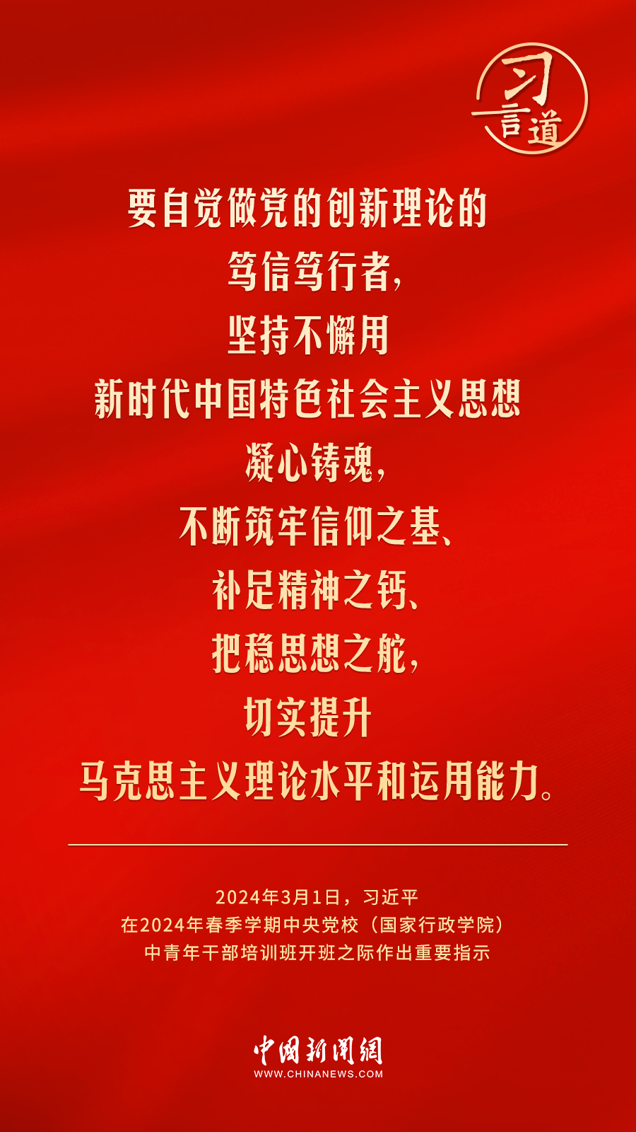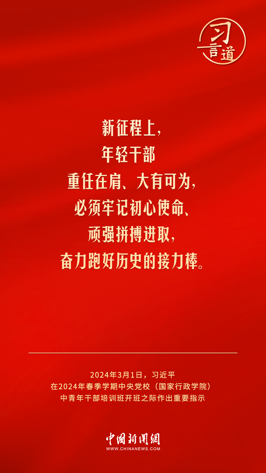 2024年春季學期中央黨校(國家行政學院)中青年干部培訓班3月1日上午在中央黨校開班。中共中央總書記、國家主席、中央軍委主席習近平作出重要指示,他強調——