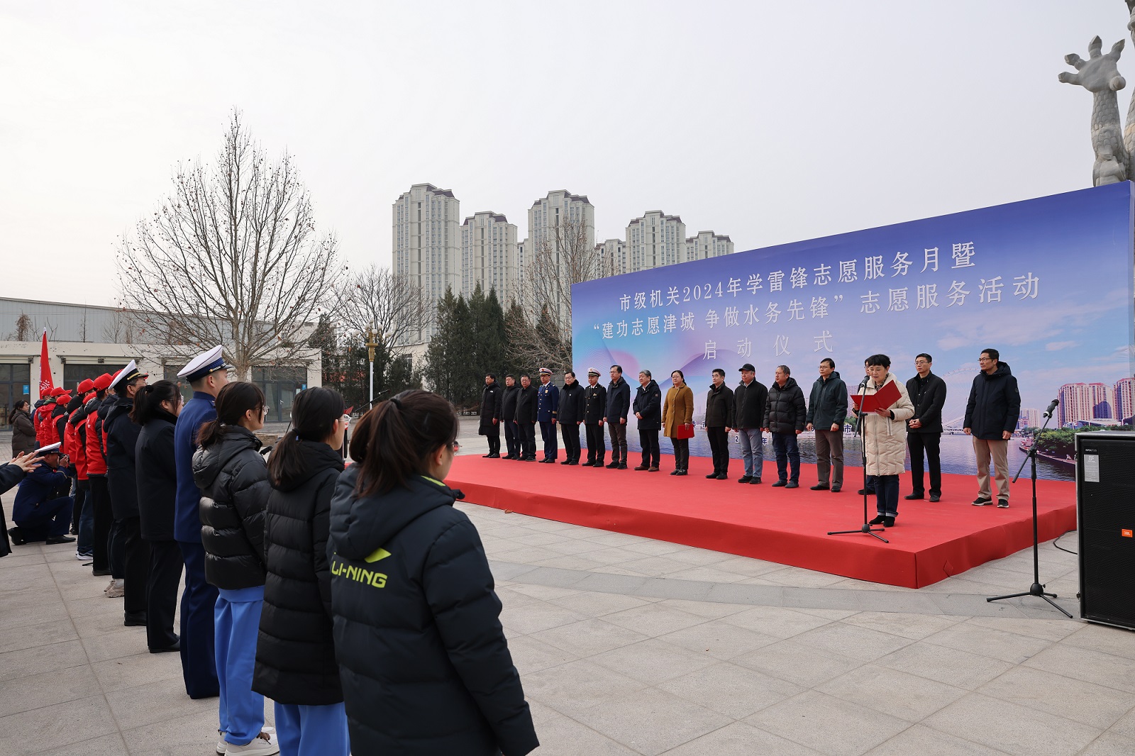 天津市級機關2024年學雷鋒志愿服務月暨“建功志愿津城 爭做水務先鋒”志愿服務活動啟動儀式現場。