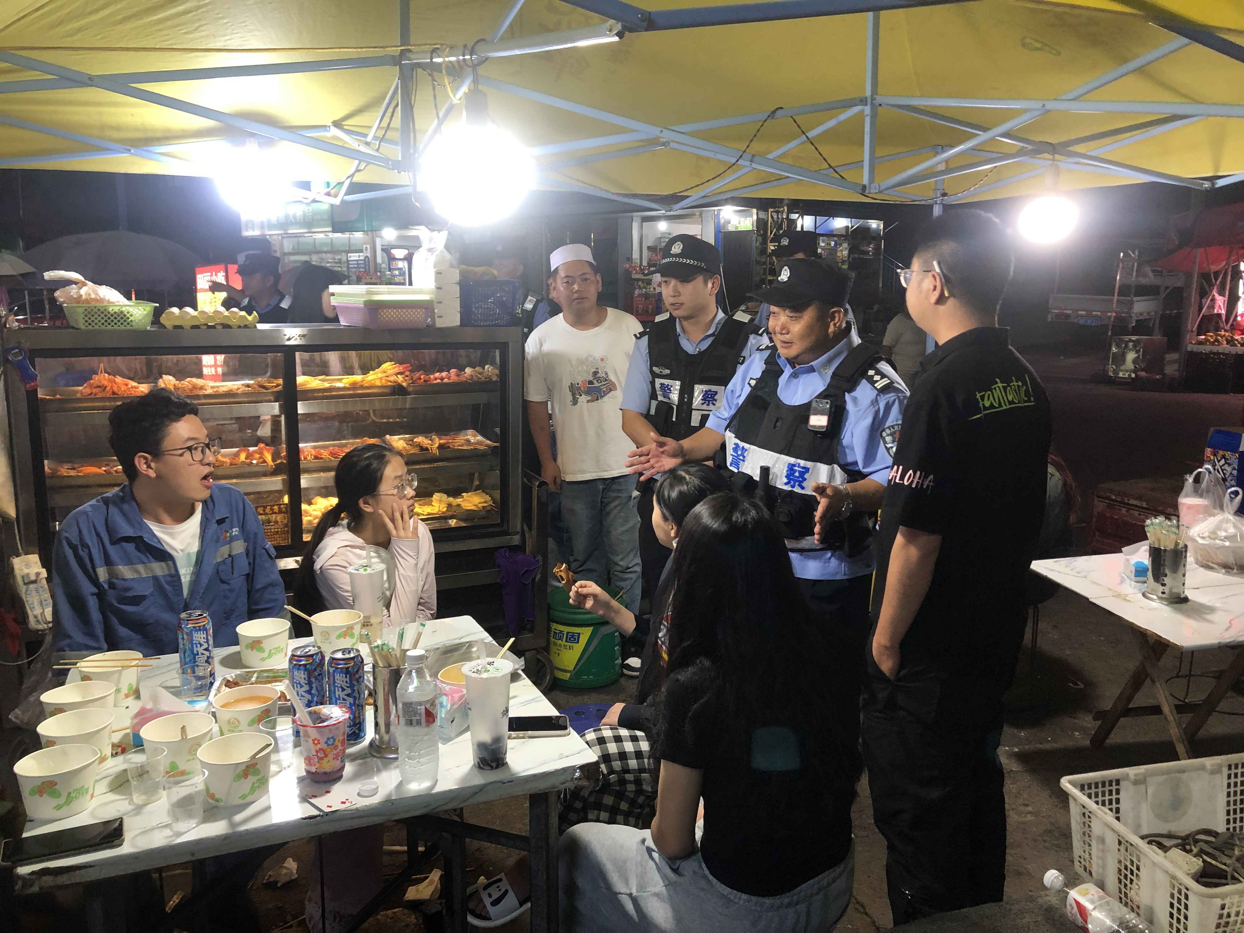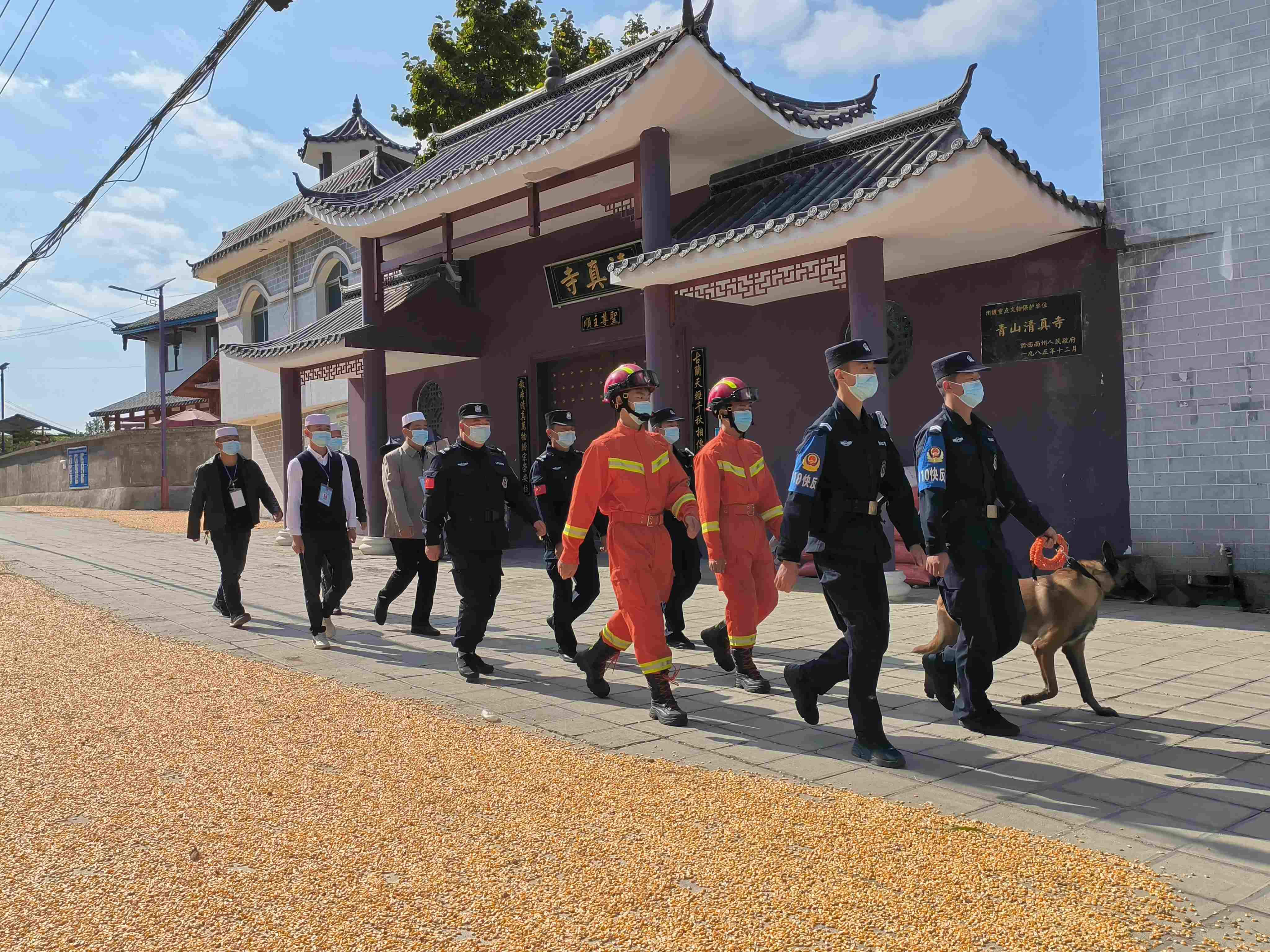 青山中心派出所聯動消防、“青城義警”開展巡邏。