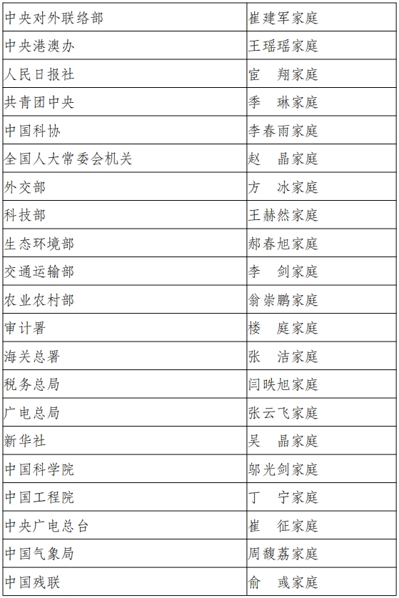 按照工作要求,現就第十四屆全國五好家庭暨家庭工作先進集體、先進個人和2024年全國最美家庭擬推薦對象予以公示,公示時間為2024年3月14日至3月20日。