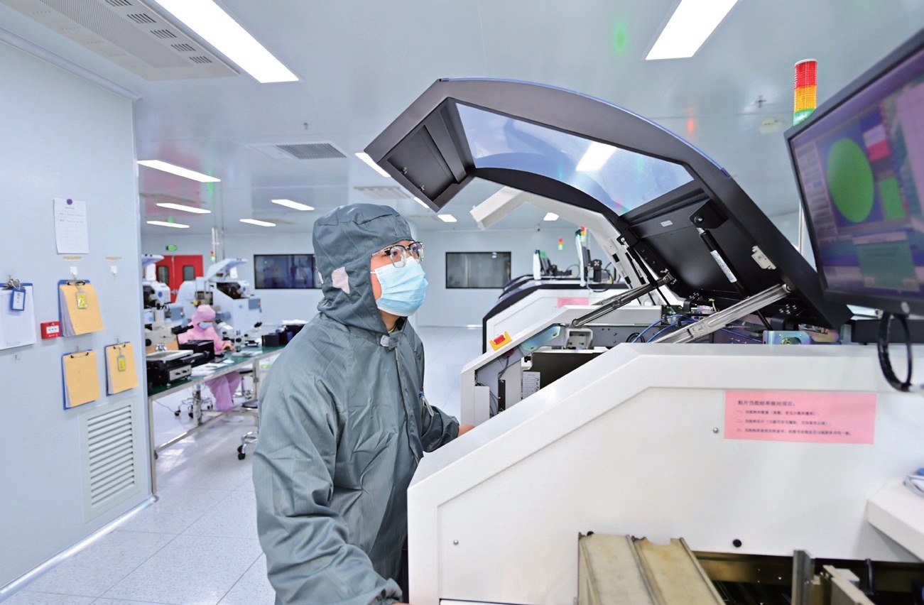 2024年3月21日,在江西省九江市湖口縣海山科技創新試驗區的一家半導體研發生產企業,技術工人正操作自動化設備進行芯片封裝、測試生產。
