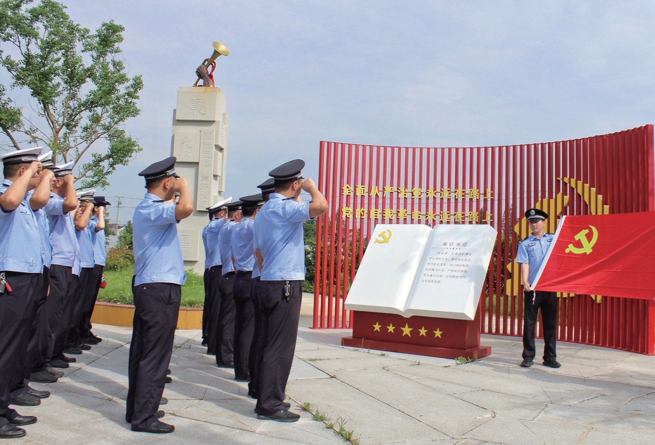 2023年6月29日,江蘇省海安市公安局城西派出所、交警高新區中隊黨員民警在廉政教育基地重溫入黨誓詞。