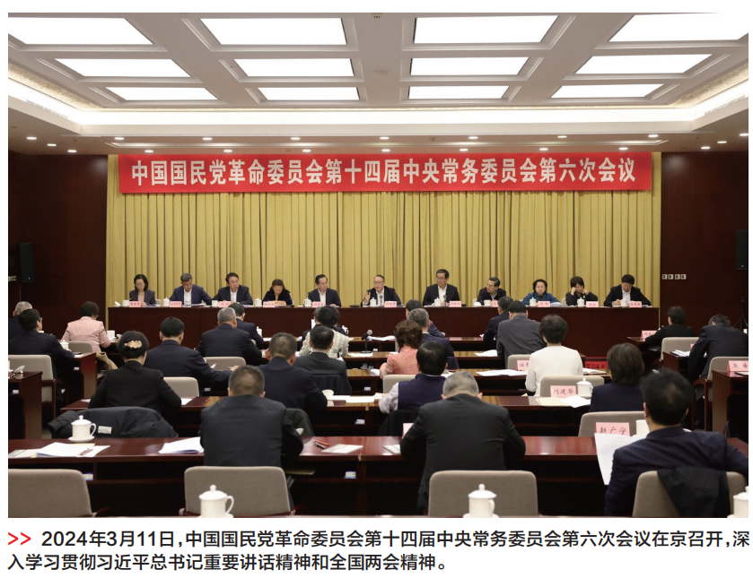 持續抓好落實。認真學習貫徹習近平總書記重要講話精神,形成細化方案,一項一項抓落實,謀求實效、不務虛功。民革要牢牢把握高質量發展這個首要任務和構建新發展格局這個戰略任務,在調研中把加快形成新質生產力擺到更加突出位置。今年民革中央年度重點考察調研圍繞“加快建設高效順暢的現代流通體系,暢通國內大循環”進行,還將聚焦培育新質生產力、加強科技創新與開放合作等重要課題建言獻策。我們要以習近平總書記關于對臺工作的重要論述為指針,深入貫徹落實新時代中國共產黨解決臺灣問題的總體方略和中共中央對臺工作決策部署,持續深耕“杰青團”“華燦獎”等民革特色工作品牌,不斷壯大反“獨”促統力量,深化兩岸各領域融合發展,努力為推進祖國統一大業作出新貢獻。