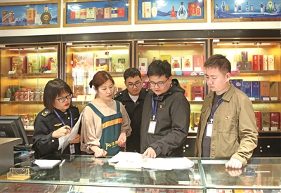 湖南省保靖縣紀委監委聯合市場監管部門成立專項督查組,深入餐館、超市、煙酒專賣店等重點場所開展監督檢查,對“五一”節前違規吃喝、公款送禮等問題進行監督檢查,嚴防“四風”反彈回潮。圖為近日,該縣專項督查組工作人員在某超市調查走訪。 龍術娥 攝