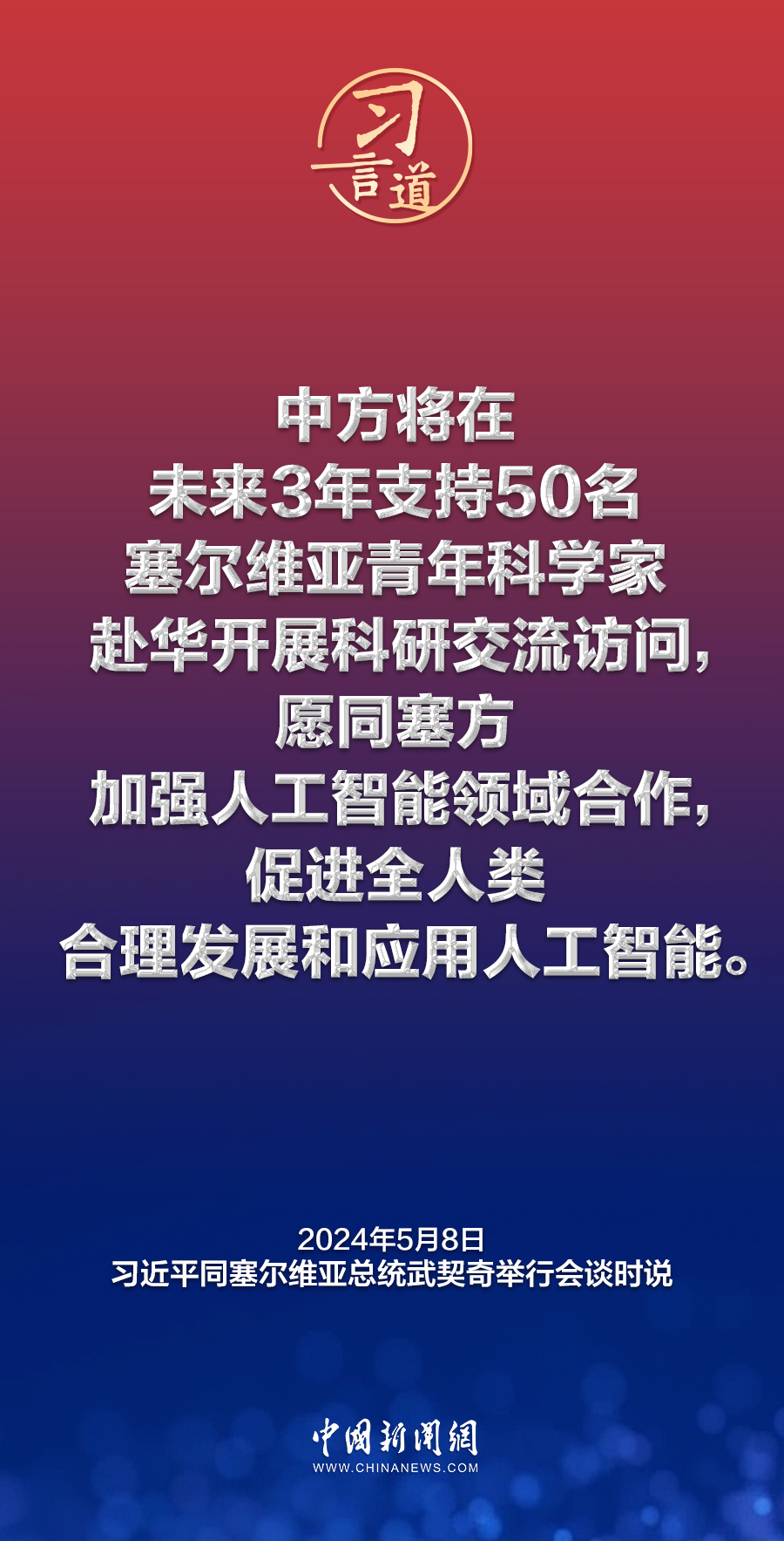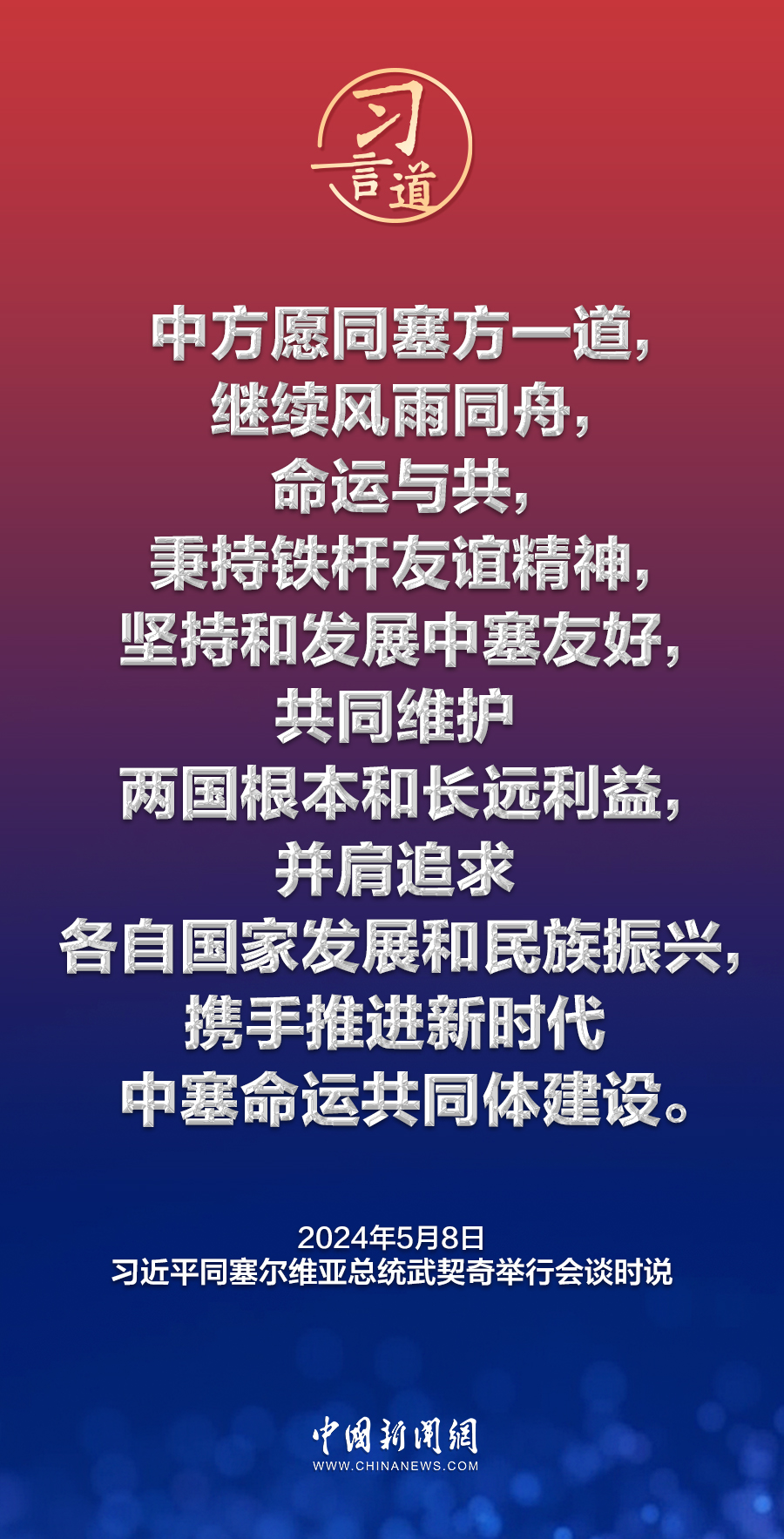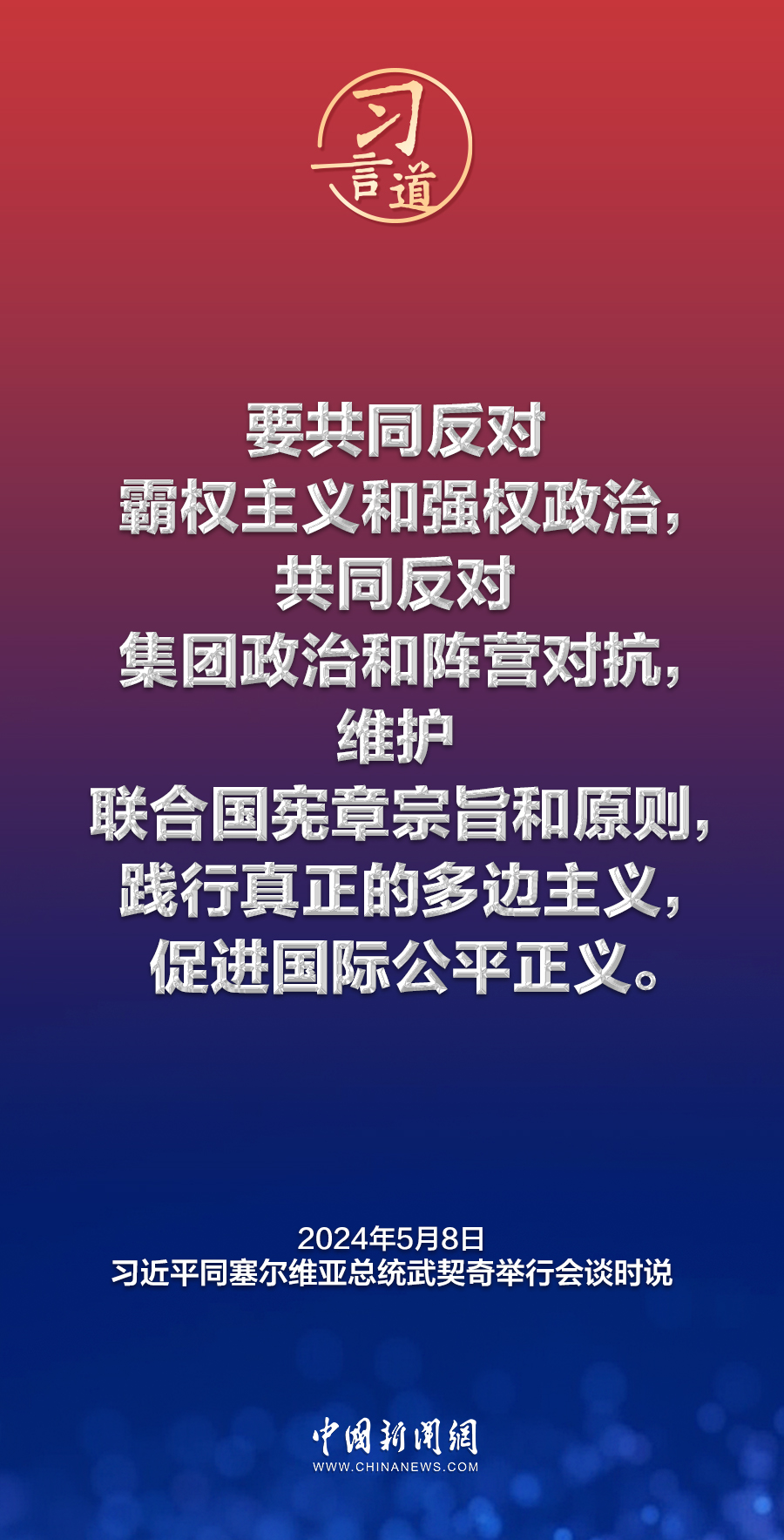 當地時間5月8日上午,國家主席習近平在貝爾格萊德塞爾維亞大廈同塞爾維亞總統武契奇舉行會談。習近平指出——