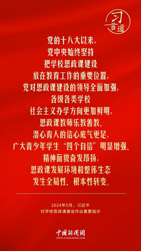 中共中央總書記、國家主席、中央軍委主席習近平近日對學校思政課建設作出重要指示,他指出——
