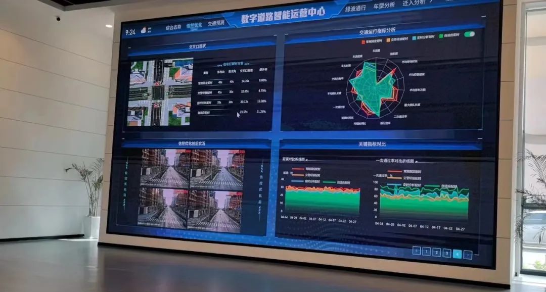 在雄安新區容東片區,153公里數字道路已投入運營。數字道路智能運營中心內,四塊屏幕涵蓋路網設備維護監管、交通運行態勢監管、交通優化方案制定與交通數據運營四個平臺。其中的數據,都來自布設在數字道路兩側,集信號燈、攝像頭、雷達以及各類傳感設施于一體的7500余根多功能智能信息桿柱。