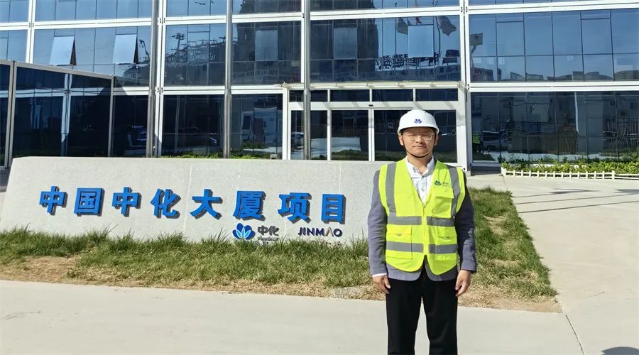 張吉爍在中化大廈項目部前留影。